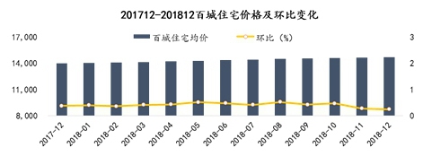 《月报》公布数据显示,2018年12月,百城住宅均价14678元/㎡,环比微涨0.25%,其中36个城市出现新格下跌,数量持续增加。今年以来,百城均价涨幅明显收窄,整体价格趋于稳定。2018年后一个月,房企冲击业绩,打折促销,叠加政策压力持续影响,调整势头将进一步延续。